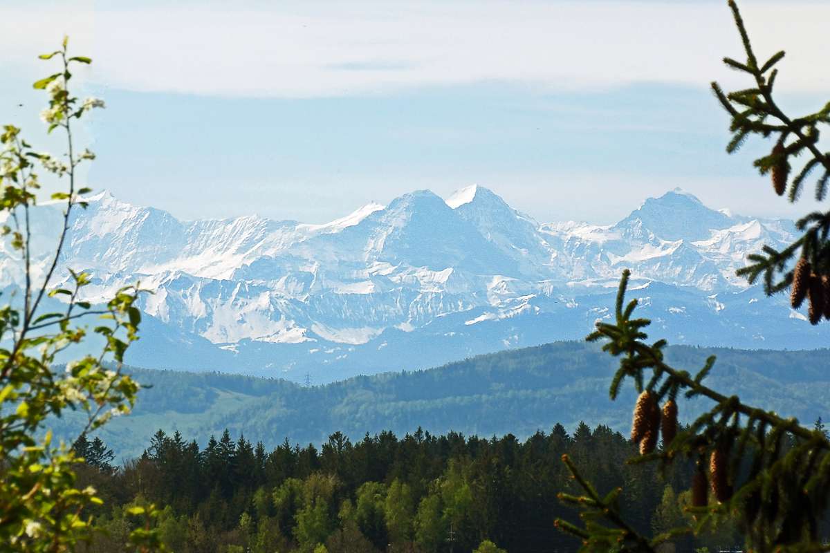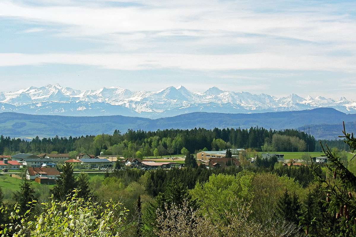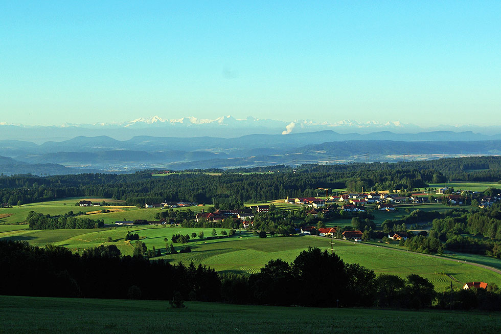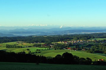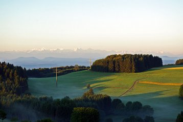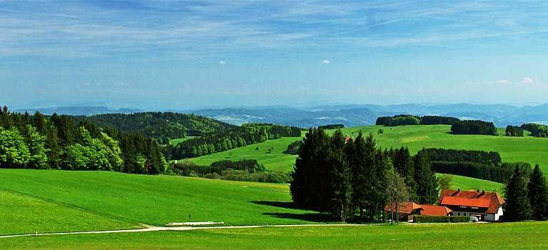 Herrliche Aussichten über sanfte Hügel & wildromantische Täler und - je nach Wetterlage - auf ein beeindruckendes Alpenpanorama.