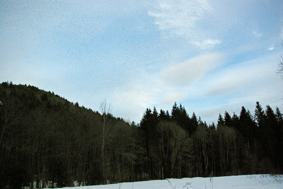 Im Winter 2009/2010 überwinterten (von Ornitologen geschätzte) 4 Millionen Bergfinken im Lindauer Tal.