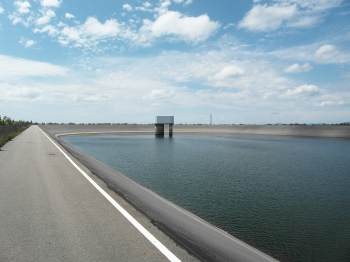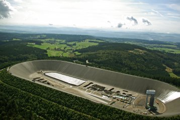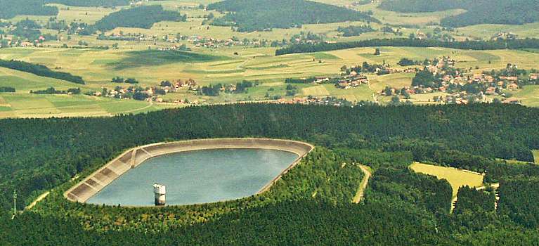Das auf der Dammkrone 700 m lange und 300 m breite Becken wurde auf seiner Außenseite nach Fertigstellung mit etwa 40.000 Bäumen und Sträuchern weiträumig bepflanzt. Eine Maßnahme, die das Becken fast unsichtbar in die Waldlandschaft integriert.