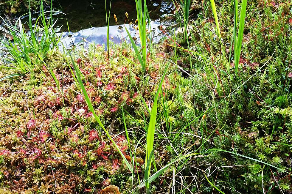Sogar der sehr seltene Sonnentau - eine fleischfressende Moor-Pflanze - ist hier noch heimisch.